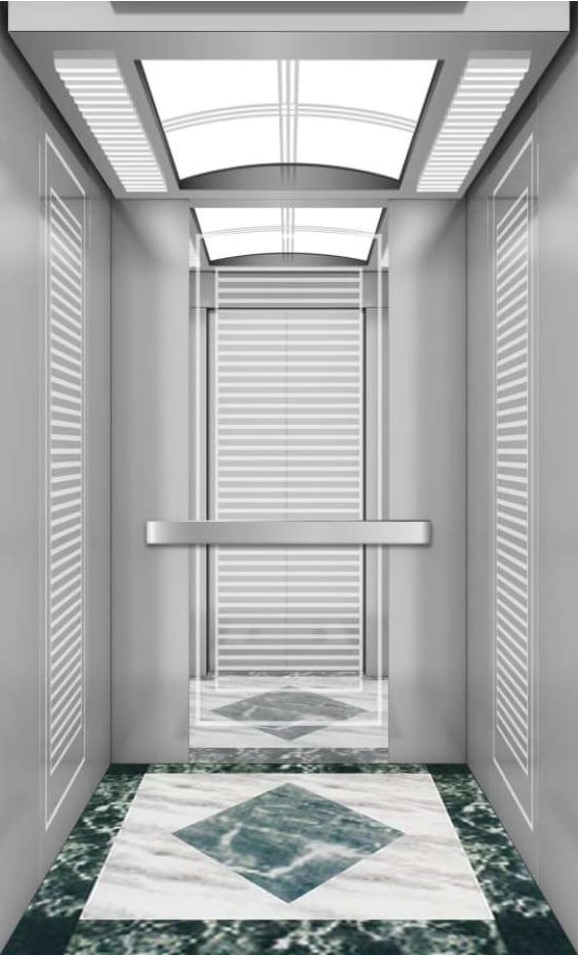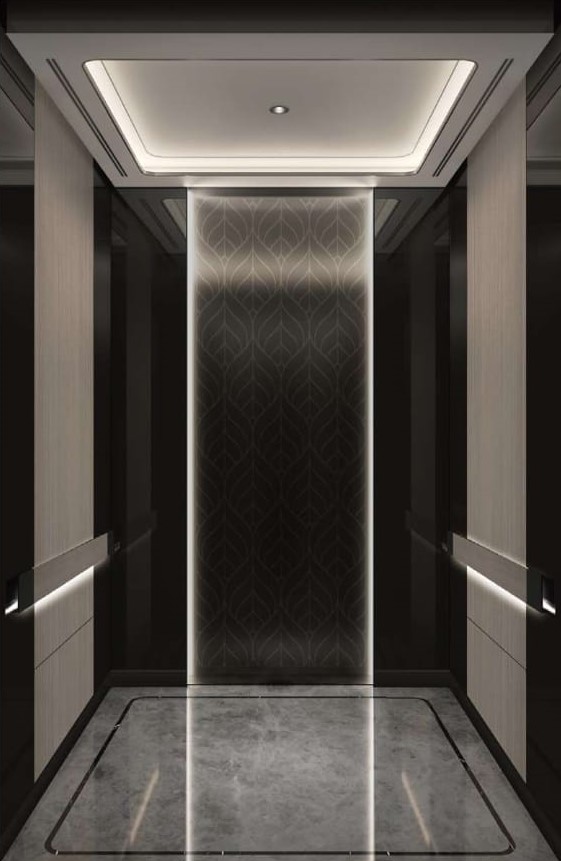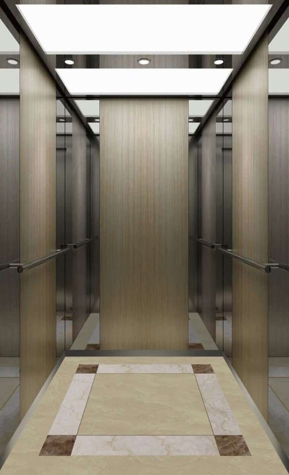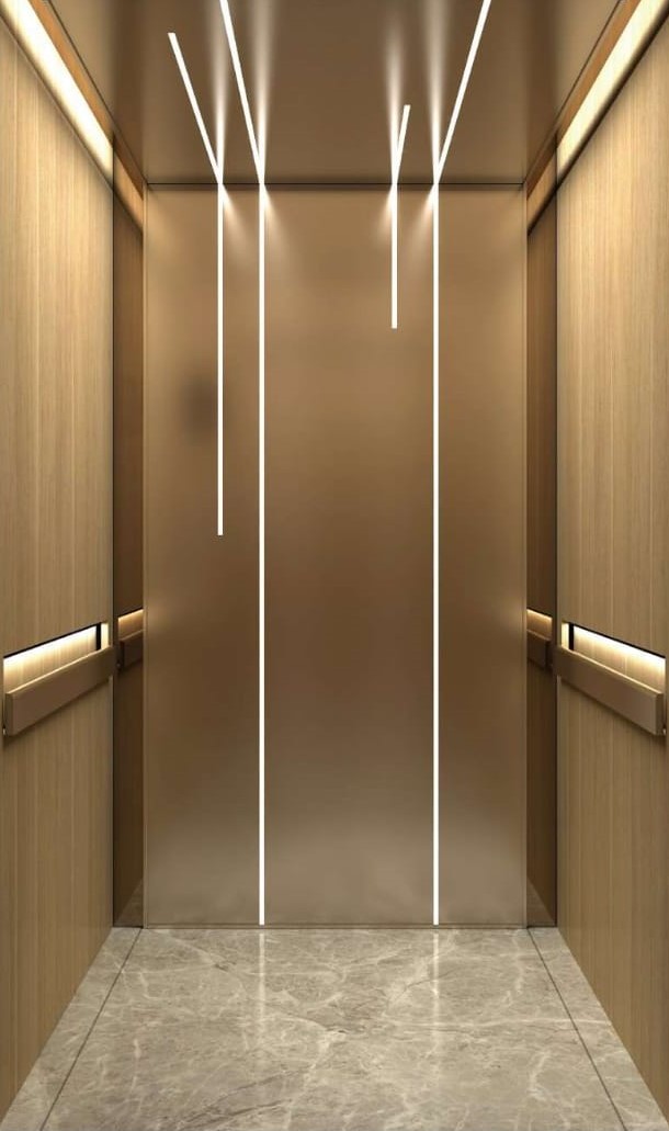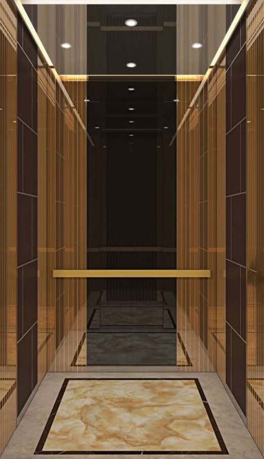 - Side wall: Leather grain fire rated panel + stainless steel decorative strip combination finish+ Rose gold mirror etched stainless steel + galvanized sheet